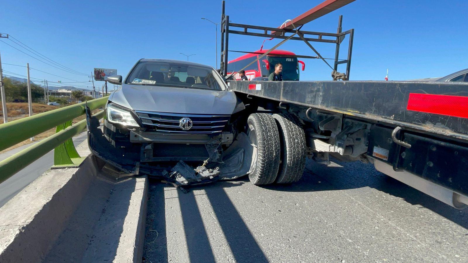 Debido al accidente, los automovilistas tuvieron que desplazarse únicamente por los carriles central y derecho. Metros atrás, el conductor de una plataforma de la empresa VentAcero intentó cambiar al carril derecho para evitar el embotellamiento ocasionado por el primer choque, pero terminó colisionando contra un vehículo MG al que le cerró el paso. El automóvil quedó prensado entre el barandal del puente y la unidad de carga, lo que complicó aún más la circulación.