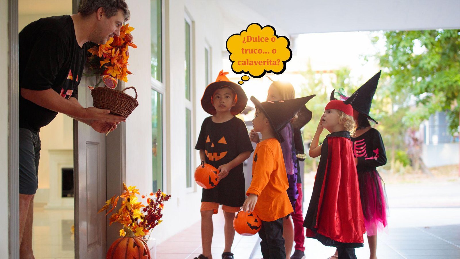 ‘Dulce o truco’ proviene de la tradición estadounidense, donde las infancias realizan la misma actividad durante el 31 de octubre —Halloween—, aunque la oración original es ‘trick or treat’.