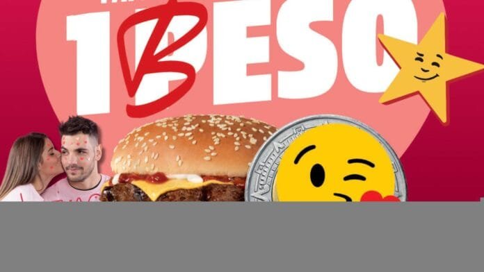 El próximo 14 de febrero, Carl’s Jr. te dará completamente gratis una Famous Star con queso a todos los clientes que visiten los restaurantes acompañados de su pareja y se den un beso mientras realizan la compra de cualquier combo de hamburguesa.
