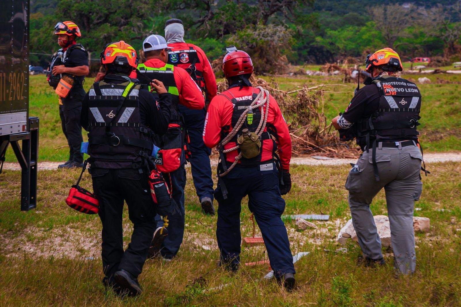 Monterrey, Nuevo León.- Los elementos de Protección Civil que fueron enviados para apoyar en las tareas de búsqueda de personas tras las inundaciones del pasado 4 de julio, ya se encuentran operando en el condado de Kerr, en Texas, Estados Unidos.