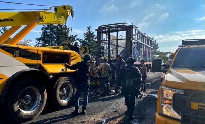 Tras el ataque, los presuntos agresores se apoderaron de vehículos comerciales, camionetas y al menos un autobús, que luego incendiaron para bloquear el paso y dificultar el avance de las autoridades.
