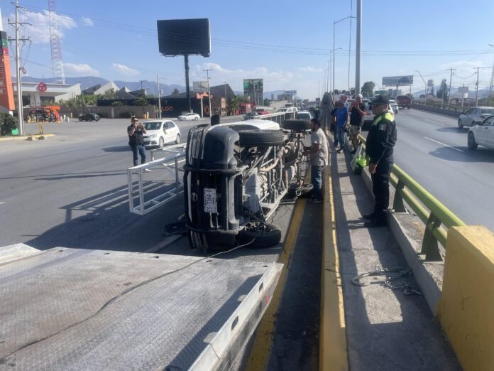 Empleado vuelca camioneta tras recibir ‘cerrón’ en bulevar Venustiano Carranza