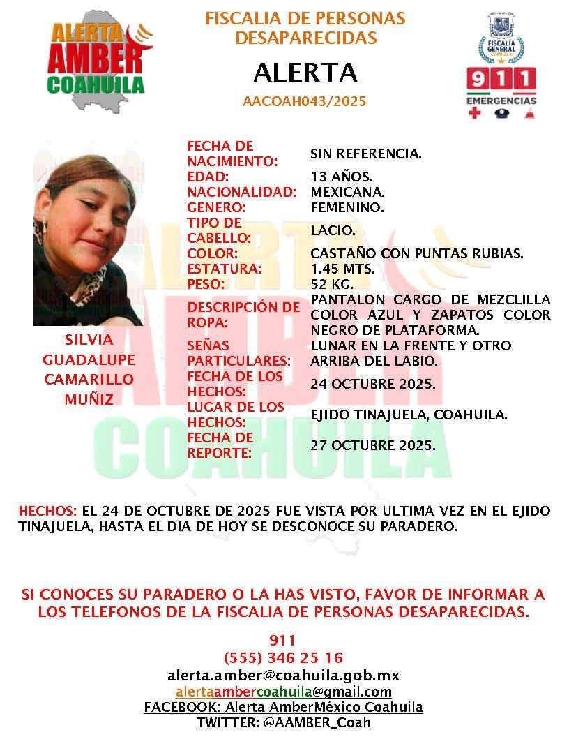La noche del 16 de noviembre, alrededor de las 20:00 horas, la Fiscalía General del Estado de Coahuila informó sobre el hallazgo del cuerpo sin vida de una menor en el ejido Buñuelos, perteneciente al municipio de Saltillo.