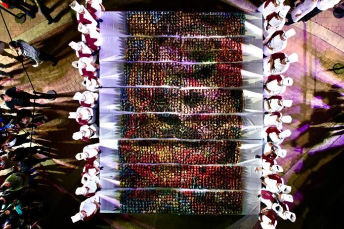 Con gran participación ciudadana y un ambiente lleno de tradición, el alcalde Javier Díaz González y su esposa Luly López Naranjo, presidenta honoraria del DIF Saltillo, compartieron con miles de familias saltillenses el Pan de Muerto Monumental, una de las actividades más esperadas del Festival Ánimas del Desierto 2025.