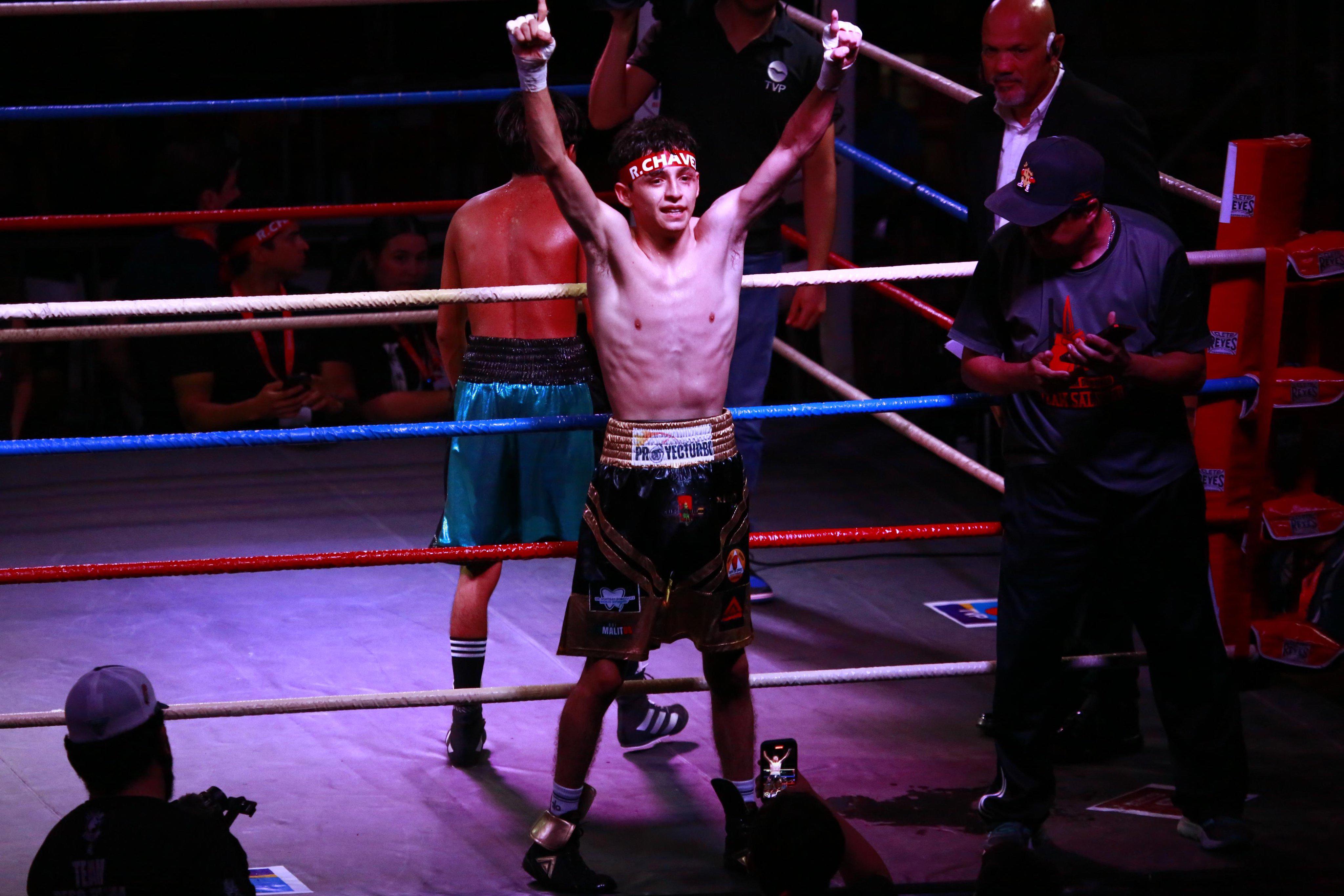 Con un historial amateur de 19 victorias y una derrota, Roberto Chávez Jr enfrentó a Richy Robles, también de 18 años y originario de Culiacán, en un combate correspondiente a la categoría Minimosca. La pelea se extendió hasta el último asalto, en donde los jueces dieron la victoria al debutante por decisión dividida.