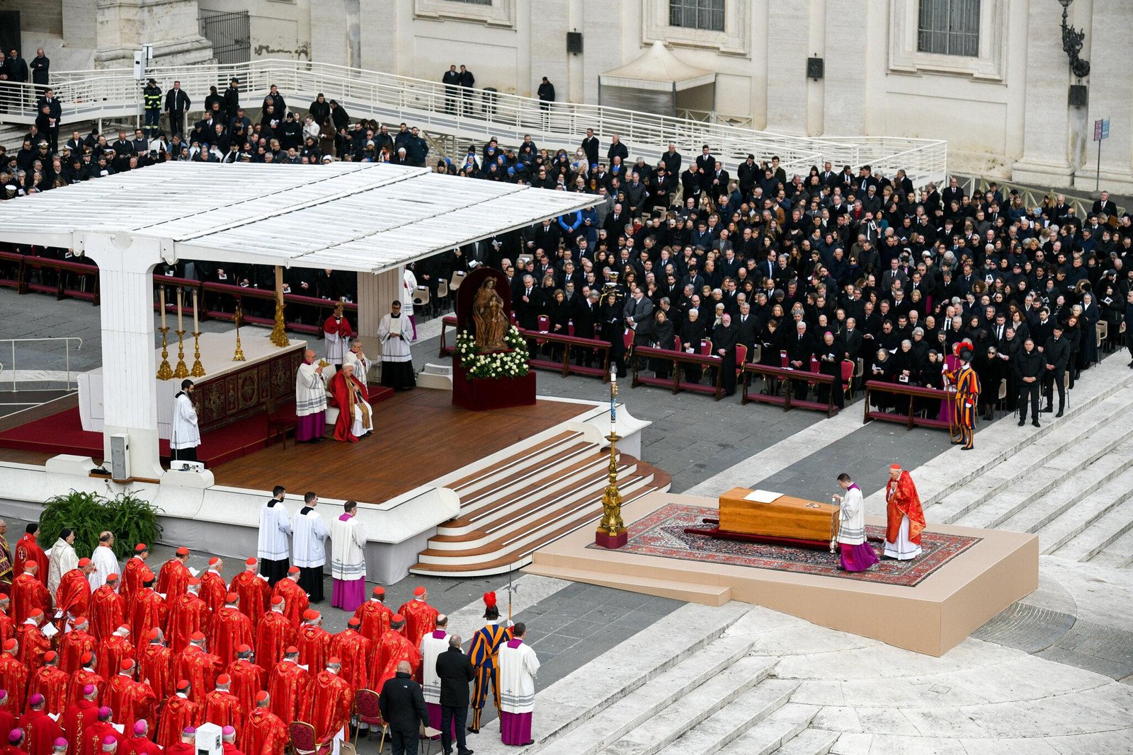 Las exequias, que suelen celebrarse entre el cuarto y el sexto día tras la muerte del pontífice, están marcadas por una misa pública celebrada frente a la Basílica de San Pedro.