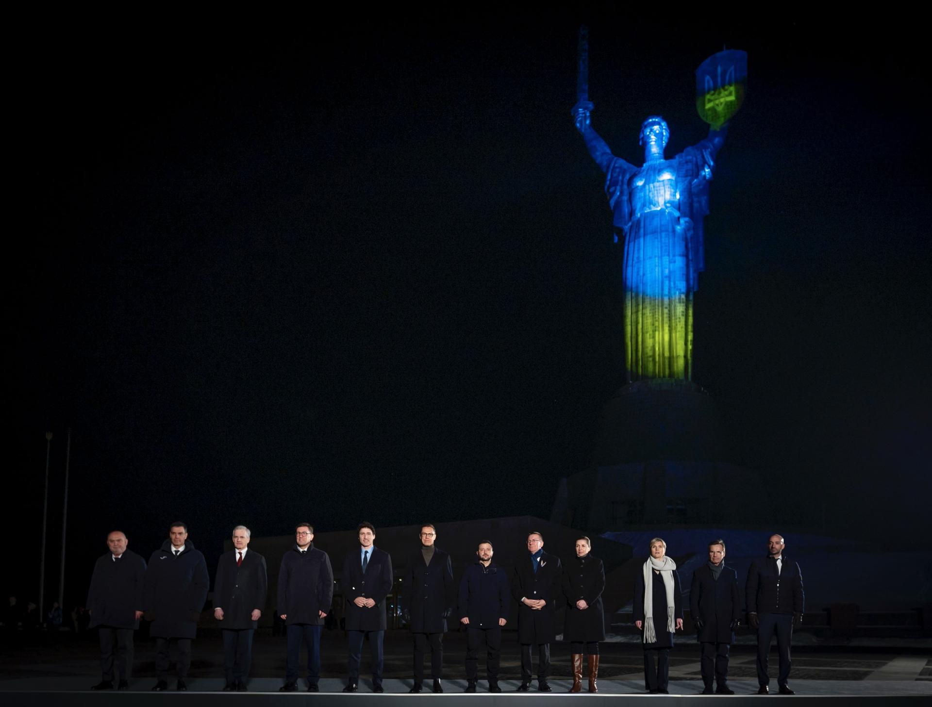 En el sombrío aniversario de la invasión, los líderes europeos y otros aliados occidentales acudieron a Kiev para demostrar su apoyo decidido y prometer más dinero y ayuda militar a Ucrania. Ursula von der Leyen, presidenta de la Comisión Europea, brazo ejecutivo de la Unión Europea (UE), dijo que reforzar las defensas y la infraestructura energética de Ucrania era de vital importancia, y que también era esencial no retroceder ahora.
