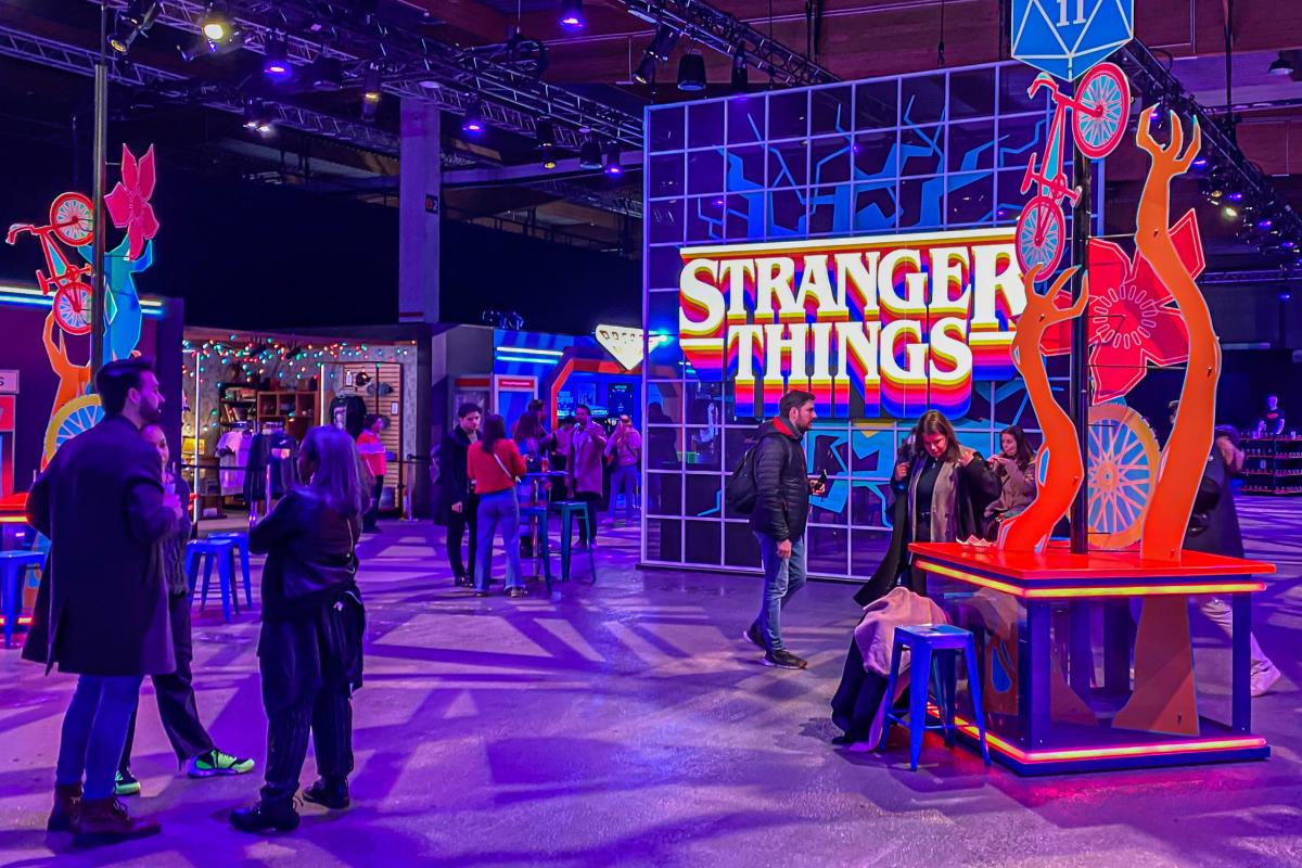 La segunda parte es la zona Mix-Tape, un homenaje vibrante a los años 80. Aquí se recrean lugares icónicos como Scoops Ahoy, El Palace Arcade y la sala de los Byers, donde los asistentes podrán disfrutar bebidas temáticas, música retro y productos exclusivos.