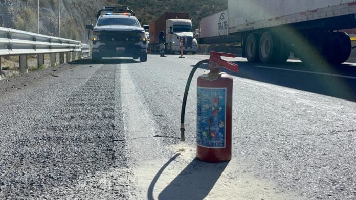 Un incendio originado por una falla mecánica en el motor de un tráiler se registró este miércoles en la carretera 57, específicamente en el kilómetro 232, en el tramo de Los Chorros, dirección Matehuala a Saltillo. El incidente ocurrió cerca de las 11:00 horas y afectó a un tractocamión de la empresa Valdés Galván.