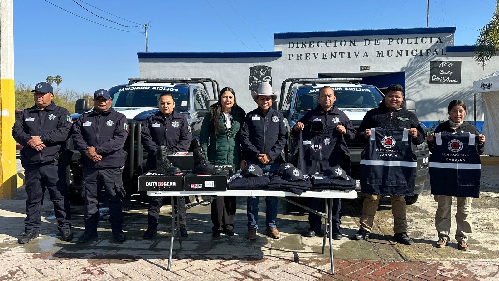 Candela, Coahuila. – En un acto que reafirma el compromiso de la administración municipal con la paz y el orden, el alcalde Fernando Juárez, acompañado por el cuerpo de regidores, encabezó la entrega de nuevo equipamiento y uniformes a los elementos de Seguridad Pública y Protección Civil.