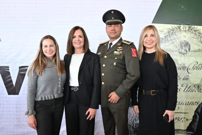 Acompañada por la secretaria de Turismo de Coahuila, Cristina Amezcua González, en representación del gobernador Manolo Jiménez Salinas, la regidora de Educación, Grecia Guadalupe Ortiz Alanís, y el director de Educación, Félix Alejandro Rodríguez Ramos, la edil destacó la importancia de honrar y preservar nuestras tradiciones cívicas.