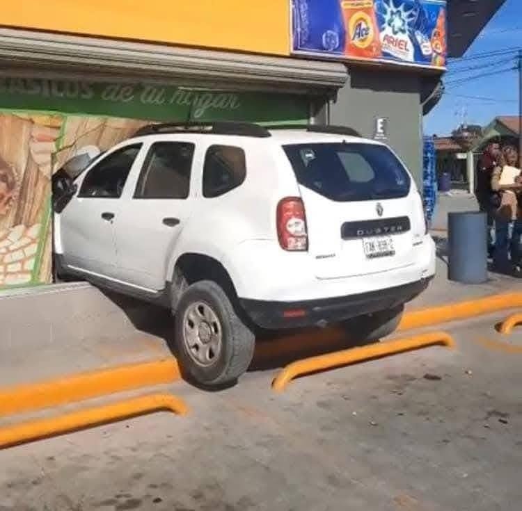 FRONTERA, COAH.- Un accidente vehicular de consideración ocurrió la mañana de ayer en el cruce de las calles Libertad y Francisco Javier Mina, en la colonia Guadalupe Borja, en Frontera, Coahuila. José, de 67 años, vecino de la colonia Azteca en Monclova, perdió el control de su Renault Duster de color blanco mientras intentaba frenar, provocando que la camioneta se estrellara contra los ventanales de una tienda de conveniencia.