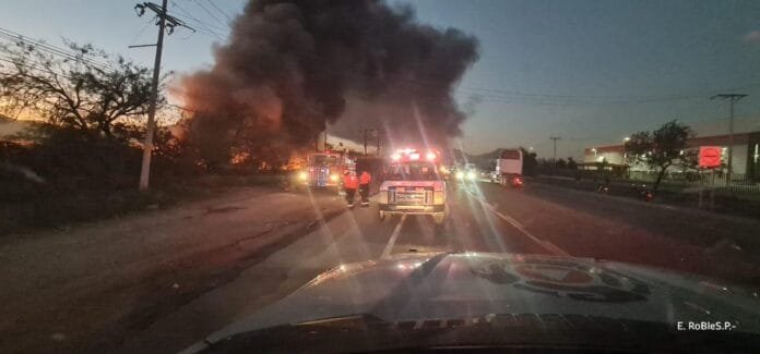 Protección Civil de Nuevo León informó que atendió el reporte del fuego que terminó por consumir unos 60 vehículos, todos ellos considerados como chatarra.