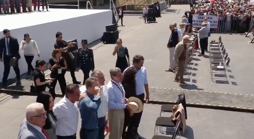 En la misma escena se encontraban Adán Augusto López, Ricardo Monreal, coordinador de los diputados morenistas; Manuel Velasco, coordinador del Partido Verde en el Senado; y Victoria Rodríguez Ceja, gobernadora del Banco de México.