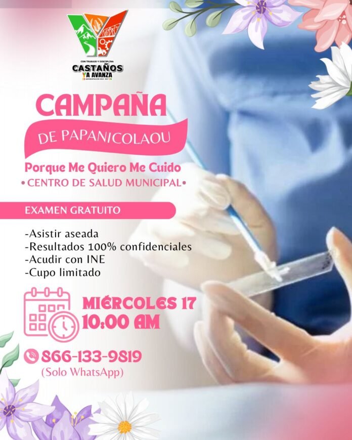 El gobierno municipal de Castaños, encabezado por la alcaldesa Yesica Sifuentes Zamora, ha puesto en marcha una importante iniciativa para el cuidado de la salud femenina. Se trata de la campaña de Papanicolaou “Porque me quiero, me cuido”, la cual se llevará a cabo durante la mañana de este miércoles 17 de septiembre.