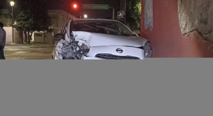 La persecución continuó por varias calles hasta que el Nissan March se estrelló contra un muro en la banqueta de la calle Guillermo Purcell.