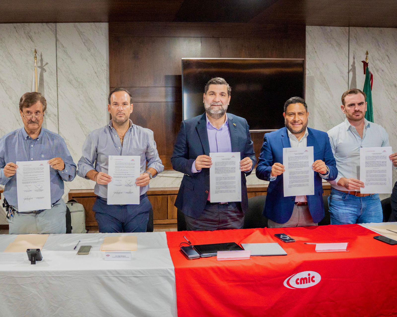 El acto se celebró en las instalaciones de la CMIC Coahuila Sureste y fue presidido por el director general del Centro SICT Coahuila, Tanech Sánchez Ángeles; y el presidente nacional de la CMIC, Luis Rafael Méndez Jaled, quien firmó como testigo de honor.