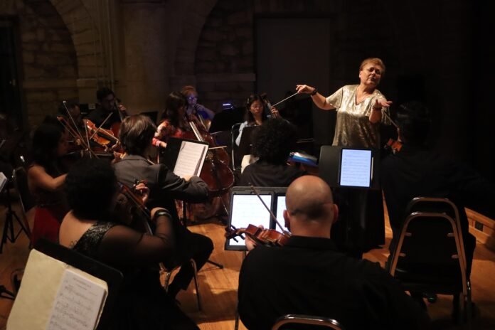 El recorrido continuó por otros jardines como el “Sub-rosa” y el de “Rosas”, donde la directora de la OMSA, Natalia Riazanova, cedió la batuta al compositor. Fisher subió a escena para dirigir el cuarto movimiento, pieza que en su momento, en un arreglo para el cuarteto ATLYS, se interpretó en ese dicho jardín para pedirle matrimonio a su esposa, Jamie, quien también lo acompañó en el concierto.