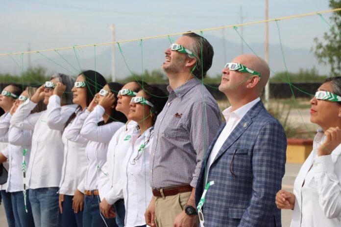 Posterior a la visita, el rector, Lic. Jesús Alfredo Oyervides Valdés, se reunió con todo el personal administrativo y visitantes, para comenzar con la observación del fenómeno a través de la pantalla en la biblioteca. Minutos más tarde, se trasladaron al patio escolar, donde bajo las medidas de seguridad indicadas, pudieron vivir presencialmente y observar el eclipse.