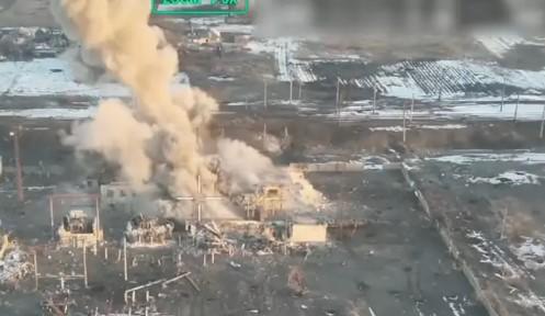 Cuando los rusos se niegan, las fuerzas ucranianas detonan un edificio cercano, lanzando cenizas y escombros que sacuden el suelo cerca de los invasores apiñados.