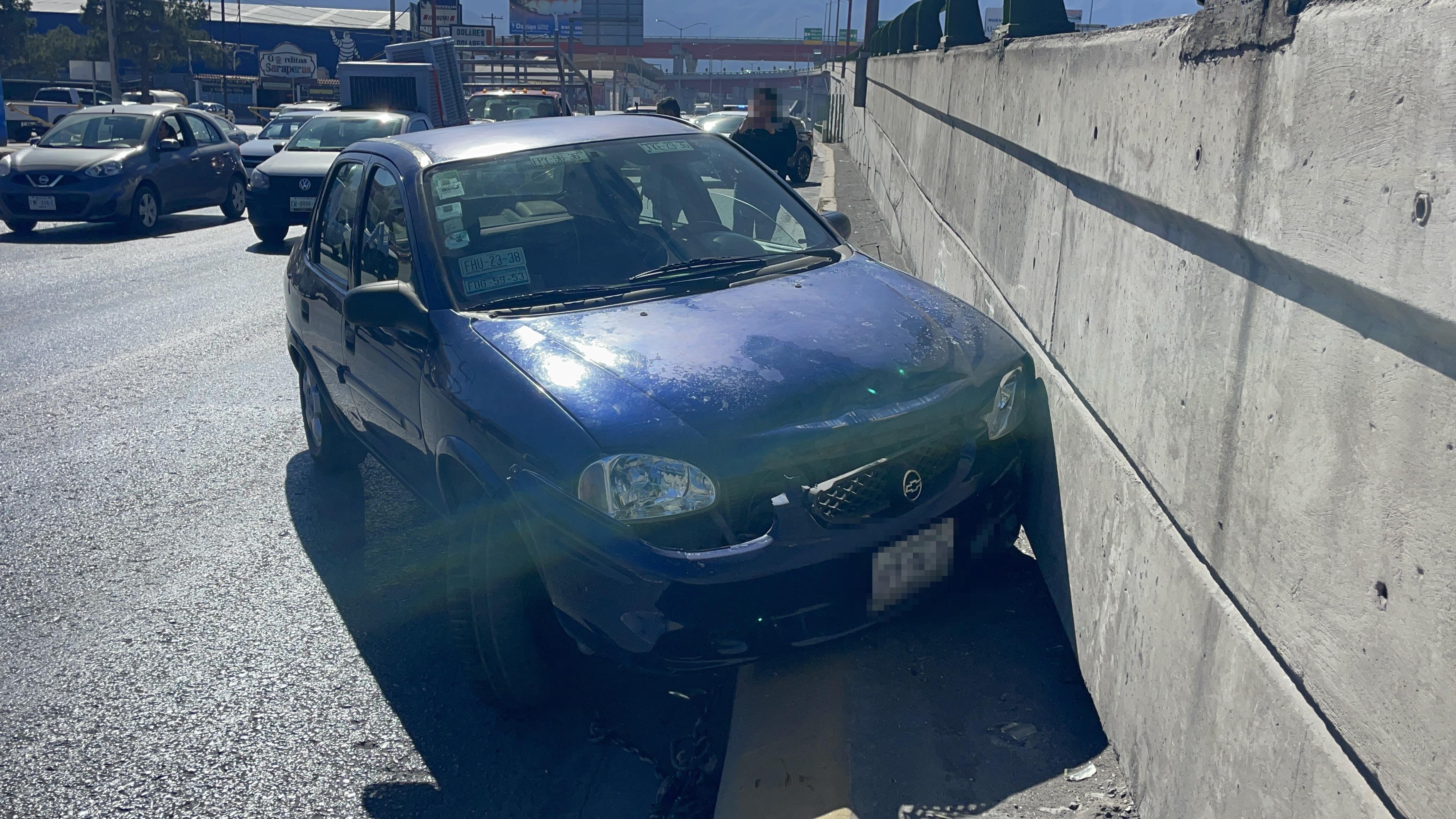 Una mujer de 64 años perdió el control de su vehículo y terminó impactando contra la barda del puente ubicado sobre el periférico Luis Echeverría Álvarez de Saltillo, en dirección a Jesús Valdés Sánchez, luego de que otro automóvil le cerrara el paso.