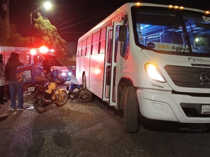 Un repartidor de pizzas resultó lesionado luego de impactarse contra un camión de transporte de personal en la colonia Hacienda Las Isabeles, al sur de Saltillo. El accidente ocurrió cuando la motocicleta en la que viajaba José Luis N., de 18 años, colisionó con la unidad de pasajeros al circular por la calle Guacali.