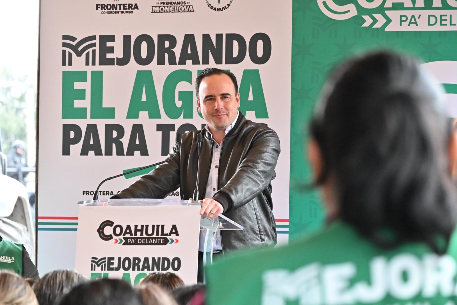 MONCLOVA, COAH.- “Una buena agasajada” le dieron al gobernador Manolo Jiménez Salinas, durante un evento de arranque del programa “Mejorando el Agua para Todos” en la Región Centro del estado.