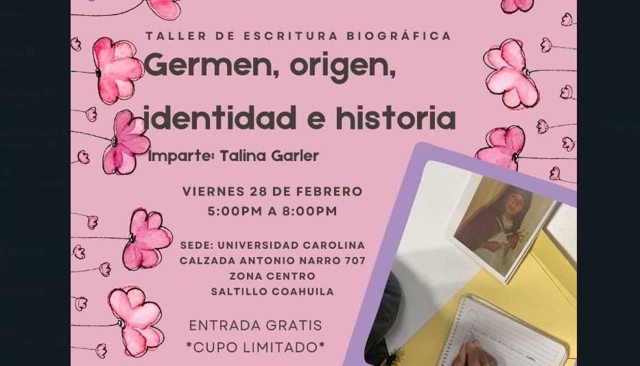 La jornada de actividades comenzará el viernes 28 de febrero con dos talleres en la Universidad Carolina: uno de escritura gráfica de 5:00 a 8:00 p. m. y otro de maquillaje de 5:00 a 7:00 p. m. Para participar en el taller de escritura gráfica, se requiere llevar un lápiz, un cuaderno y una fotografía de cuando se era niño.