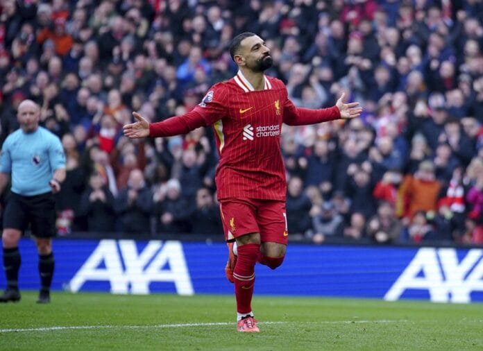 Salah duplicó la ventaja desde penal a los 37, después de que Díaz fue derribado en el área. El astro egipcio suma 23 goles para liderar la tabla de anotadores de la Premier.