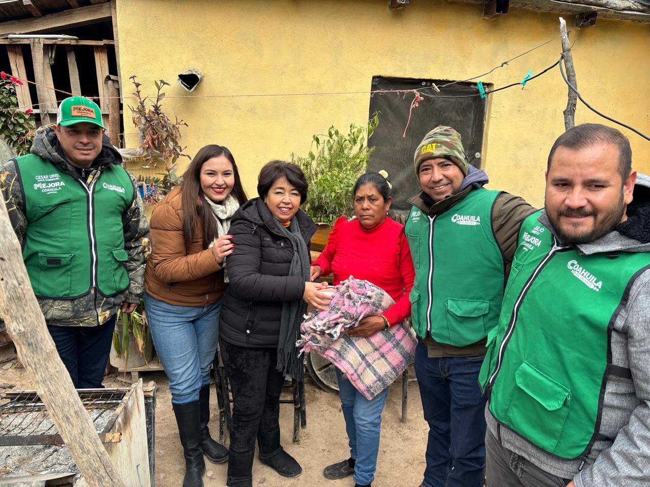 La alcaldesa, acompañada de representantes de Mejora Coahuila y Protección Civil, entregó comida caliente y abrigo en las zonas más vulnerables.