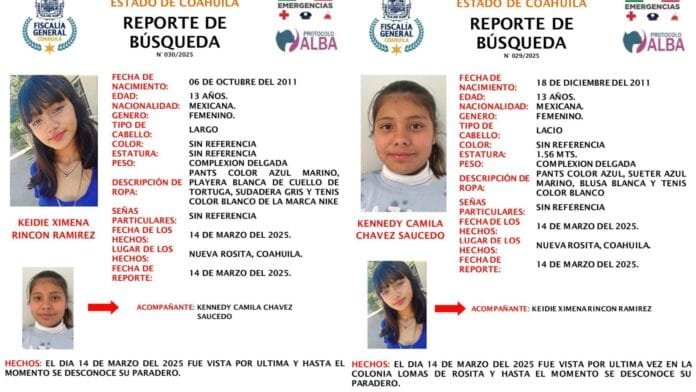 TE PUEDE INTERESAR: Desaparecen dos amigas de 13 años en Nueva Rosita; activan protocolos de búsqueda