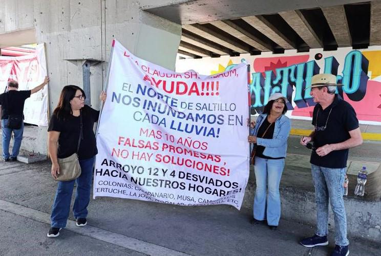 Un grupo de poco más de 50 personas se manifestó la tarde del sábado 18 de octubre en el cruce del bulevar Venustiano Carranza y el Periférico Luis Echeverría de Saltillo, exigiendo a las autoridades atención urgente a las inundaciones que afectan a las colonias del norte de la ciudad.