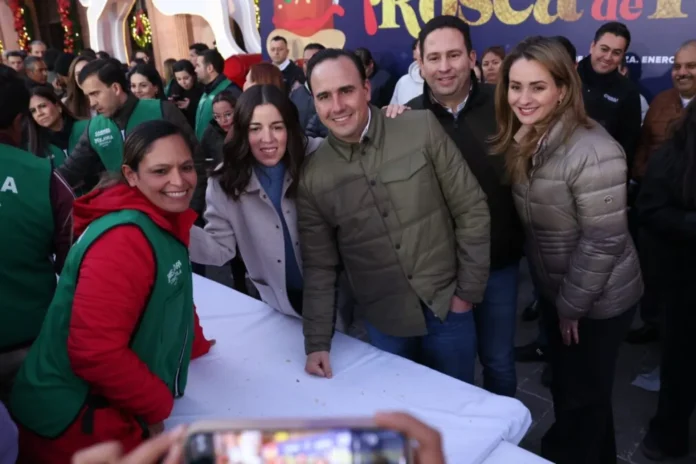 La Plaza de Armas de Saltillo fue el escenario de una emotiva convivencia con cientos de familias que se unieron para compartir la tradicional Rosca de Reyes en compañía del gobernador Manolo Jiménez Salinas, su esposa Paola Rodríguez López, sus hijos y diversas autoridades municipales y estatales.