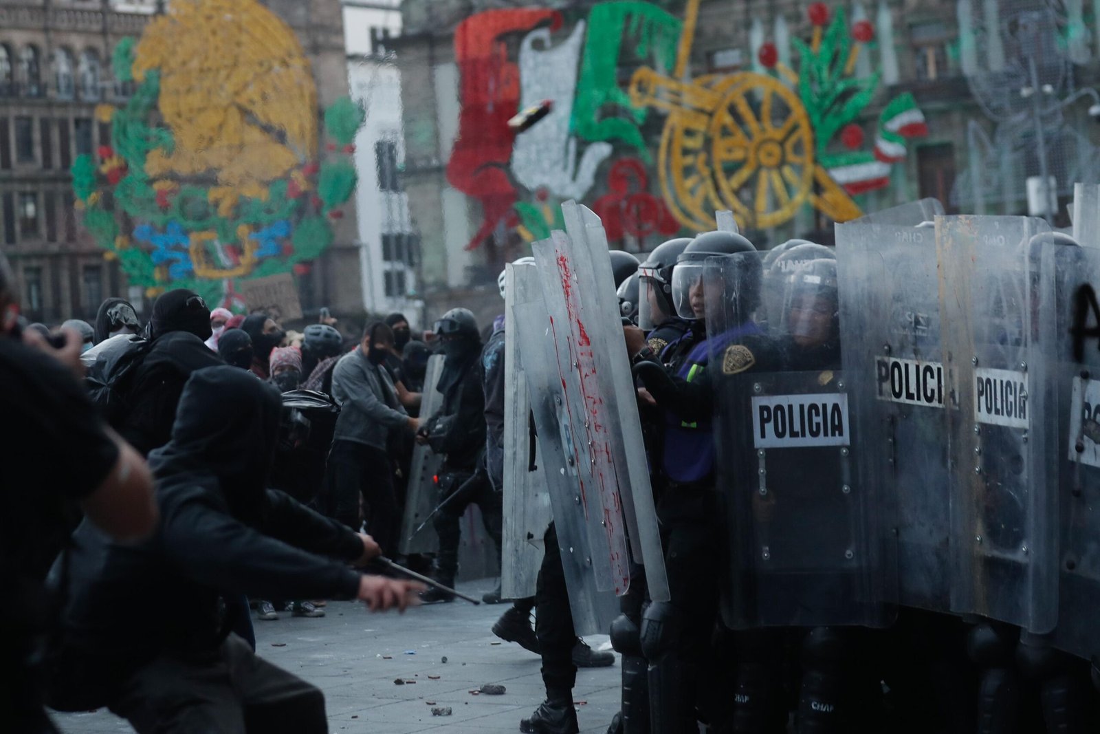 Mientras tanto, integrantes del ‘bloque negro’ se enfrentaron con petardos contra agentes de la Secretaría de Seguridad Ciudadana (SSC). Reporteros informan que policías capitalinos utilizaron extintores para dispersarlos, y se movilizaron para encapsularlos.
