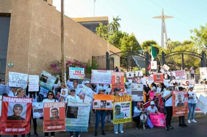 Los manifestantes que se concentraron en forma inicial fuera del atrio de catedral, en el centro de la capital del estado, exhibieron pancartas con los rostros e identidades de sus seres queridos que han sido privados de su libertad a lo largo de este nuevo periodo de violencia que ha trastocado la vida de la población.