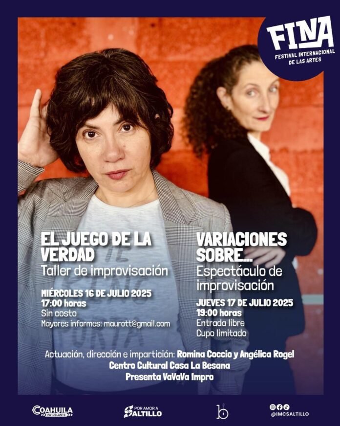 Como parte de la programación del Festival Internacional de las Artes (FINA) en Saltillo, Romina Coccio y Angélica Rogel presentarán dos actividades imperdibles: