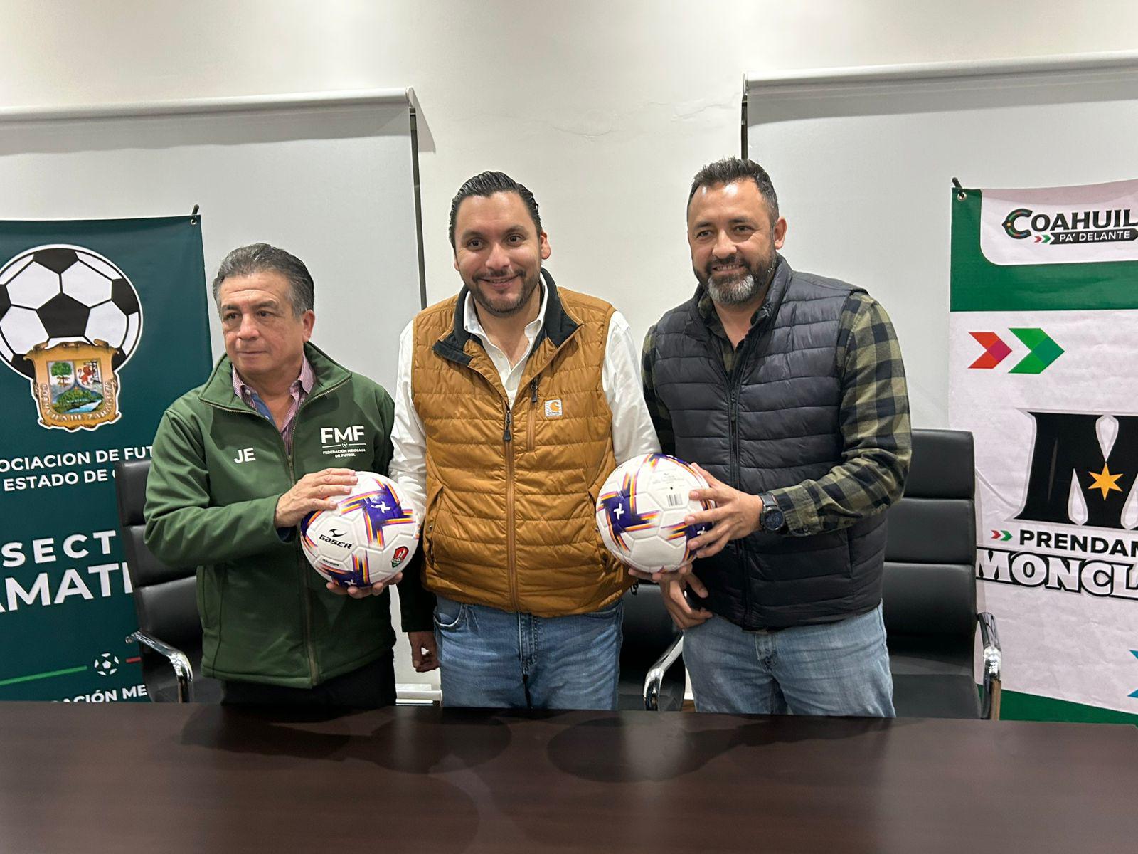 El anuncio se realizó en rueda de prensa encabezada por el alcalde Carlos Villarreal Pérez, el director de Deportes de Monclova, Daniel Alejandro Morales Rincón, y el presidente de la Asociación de Futbol de Coahuila, Juan Elizalde Vallejo.