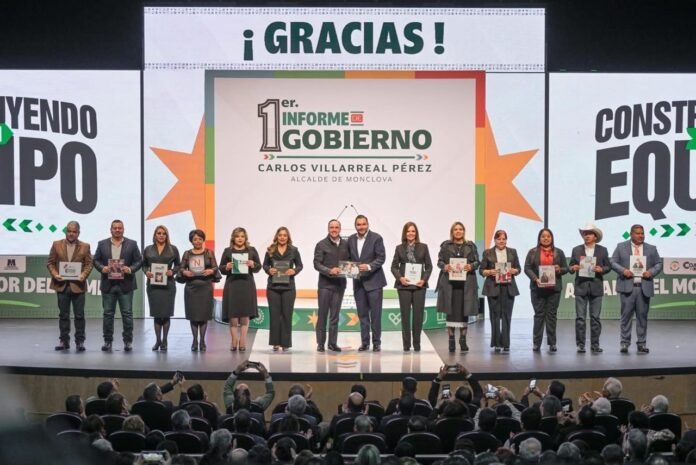 MONCLOVA, COAH.- Ante un Teatro de la Ciudad Raúl Flores Canelo abarrotado, el alcalde Carlos Villarreal rindió su Primer Informe de Gobierno, donde destacó una inversión histórica superior a los 700 millones de pesos aplicada durante 2025 en seguridad, infraestructura, desarrollo social, turismo y economía.