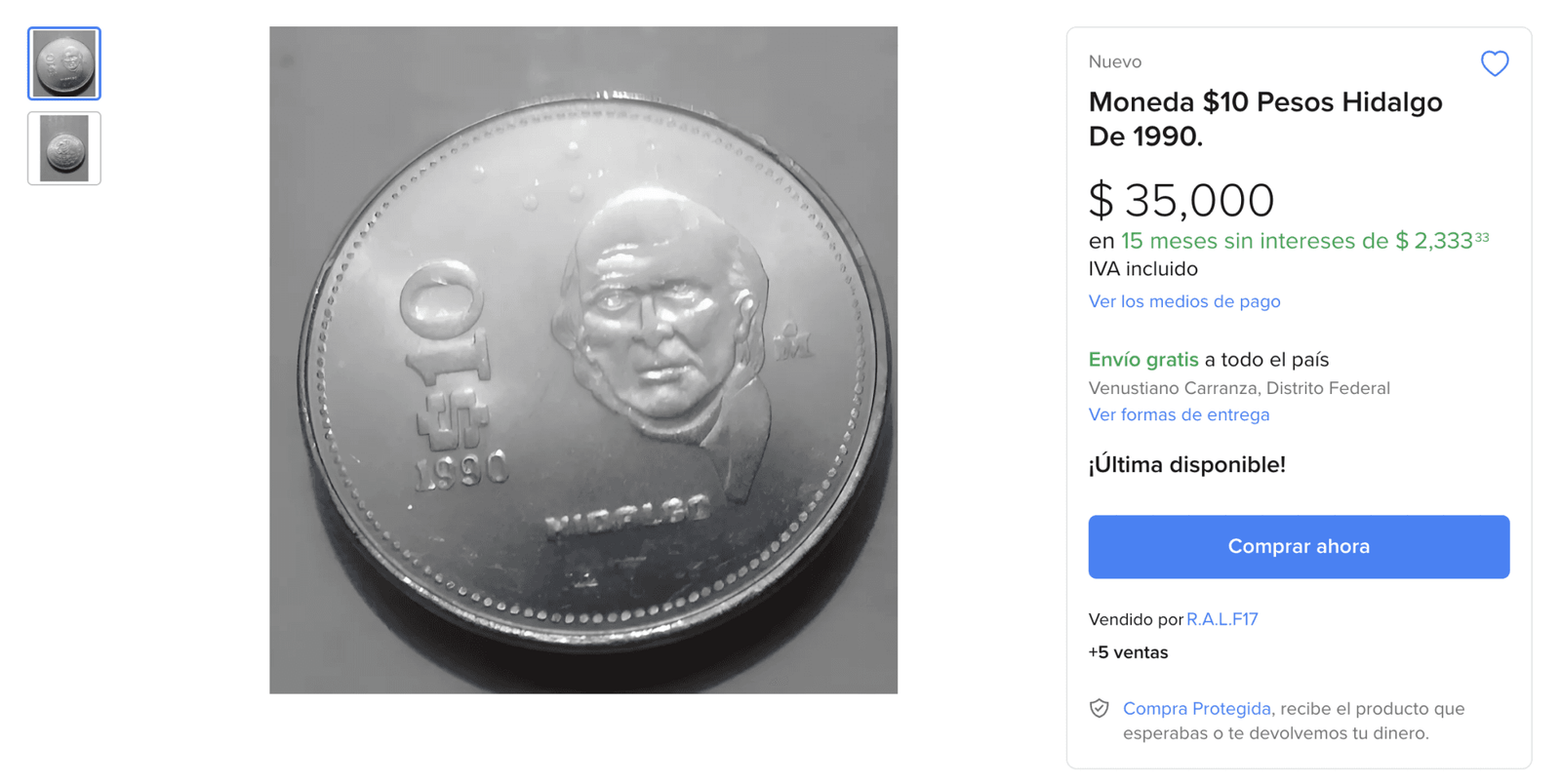 En el fascinante mundo del coleccionismo numismático, las monedas mexicanas antiguas continúan siendo piezas de gran valor para entusiastas y coleccionistas. Una de las más buscadas actualmente es la moneda de 10 pesos de 1990, que se encuentra en venta por hasta $35,000 en plataformas como Mercado Libre. Descubre qué hace tan especial a esta moneda y por qué su precio puede alcanzar cifras tan altas.