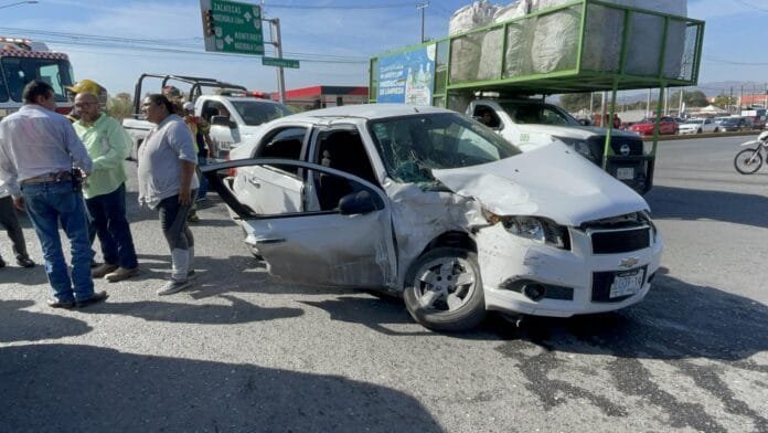 Un conductor que circulaba a exceso de velocidad y no respetó la luz roja del semáforo, provocó un accidente vial en el cruce de Antonio Cárdenas y Luis Echeverría Álvarez, al sur de Saltillo, la tarde de este martes, dejando a dos mujeres lesionadas, además de ocasionar un caos vehicular.