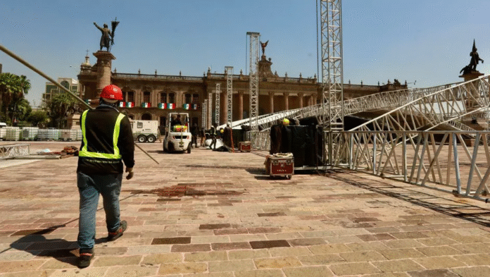 MONTERREY, NL.- En la Explanada de los Héroes ya se monta la estructura que recibirá a miles de asistentes al primer informe de actividades de la presidenta Claudia Sheinbaum Pardo, programado para este sábado a las 18:30 horas frente al Palacio de Gobierno de Nuevo León.