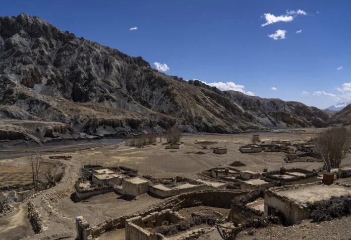 Ubicado en un valle esculpido por el viento en el Alto Mustang de Nepal, a más de 3,960 metros (13,000 pies) sobre el nivel del mar, este pueblo budista vivía a un ritmo lento y deliberado: en el pastoreo de yaks y ovejas, y en la cosecha de cebada bajo acantilados ocres perforados con “cuevas del cielo”, cámaras de 2,000 años de antigüedad utilizadas para entierros ancestrales, meditación y refugio.