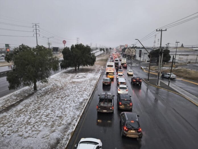 Desde las primeras horas de este martes, Saltillo se despertó con una capa de nieve y aguanieve que rápidamente cubrió gran parte de la ciudad, como resultado del ingreso del frente frío número 24. Las temperaturas cayeron a -5°C, con una sensación térmica de hasta -8°C, lo que ocasionó afectaciones en la movilidad y diversas actividades cotidianas.