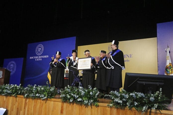 En una emotiva sesión solemne del Honorable Consejo Universitario, la Universidad Autónoma de Coahuila (UAdeC) confirió el máximo grado académico de Doctor Honoris Causa a Dr. José Narro Robles y al maestro José Fuentes García. Eslte reconocimiento celebra sus destacadas contribuciones en los campos de la academia, las políticas sanitarias, la legislación y la jurisprudencia.