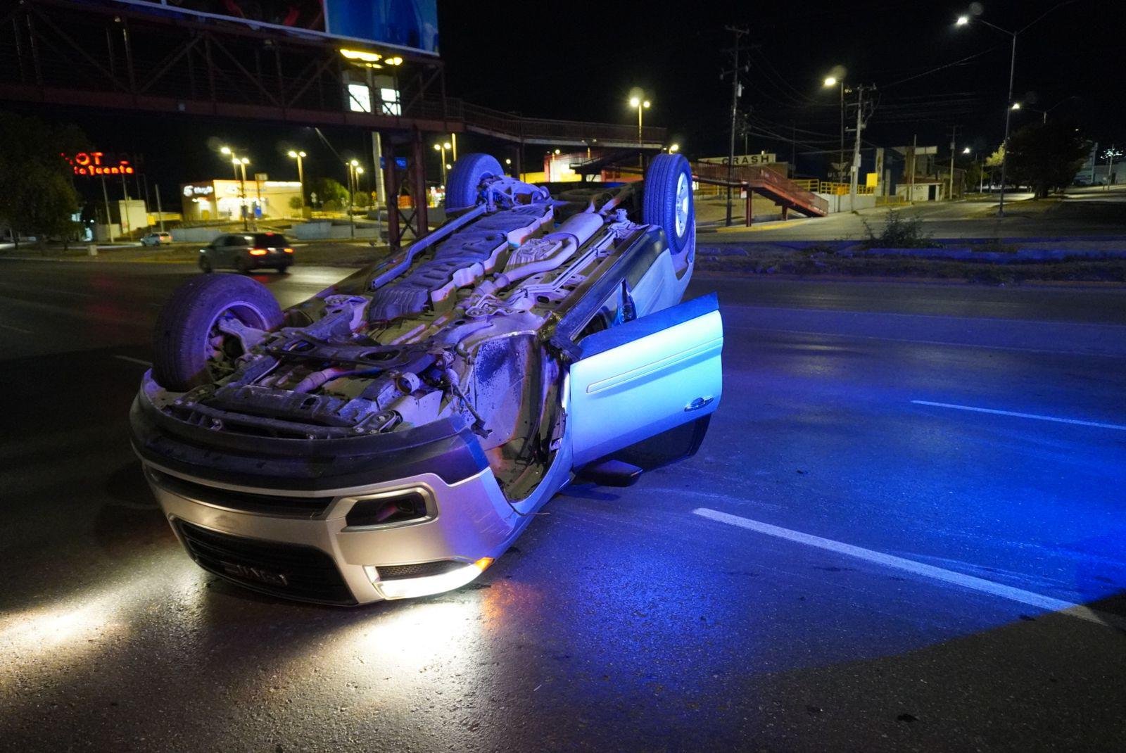 El conductor de una camioneta GMC terminó volcando después de impactarse contra un muro de contención a la altura de la colonia Morelos, en Saltillo.