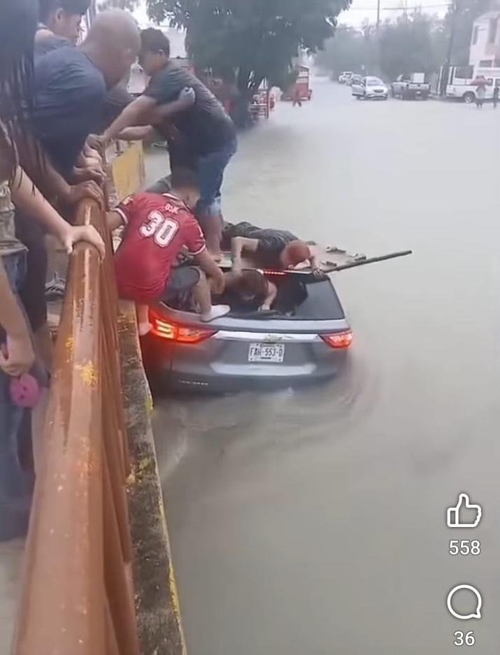 Videos difundidos en redes sociales muestran la desesperación del momento y la rápida acción de los rescatistas, a quienes los usuarios no tardaron en llamar “héroes sin capa”. En las imágenes también aparece otra camioneta con placas de Texas que quedó varada a pocos metros del Puente Internacional II.
