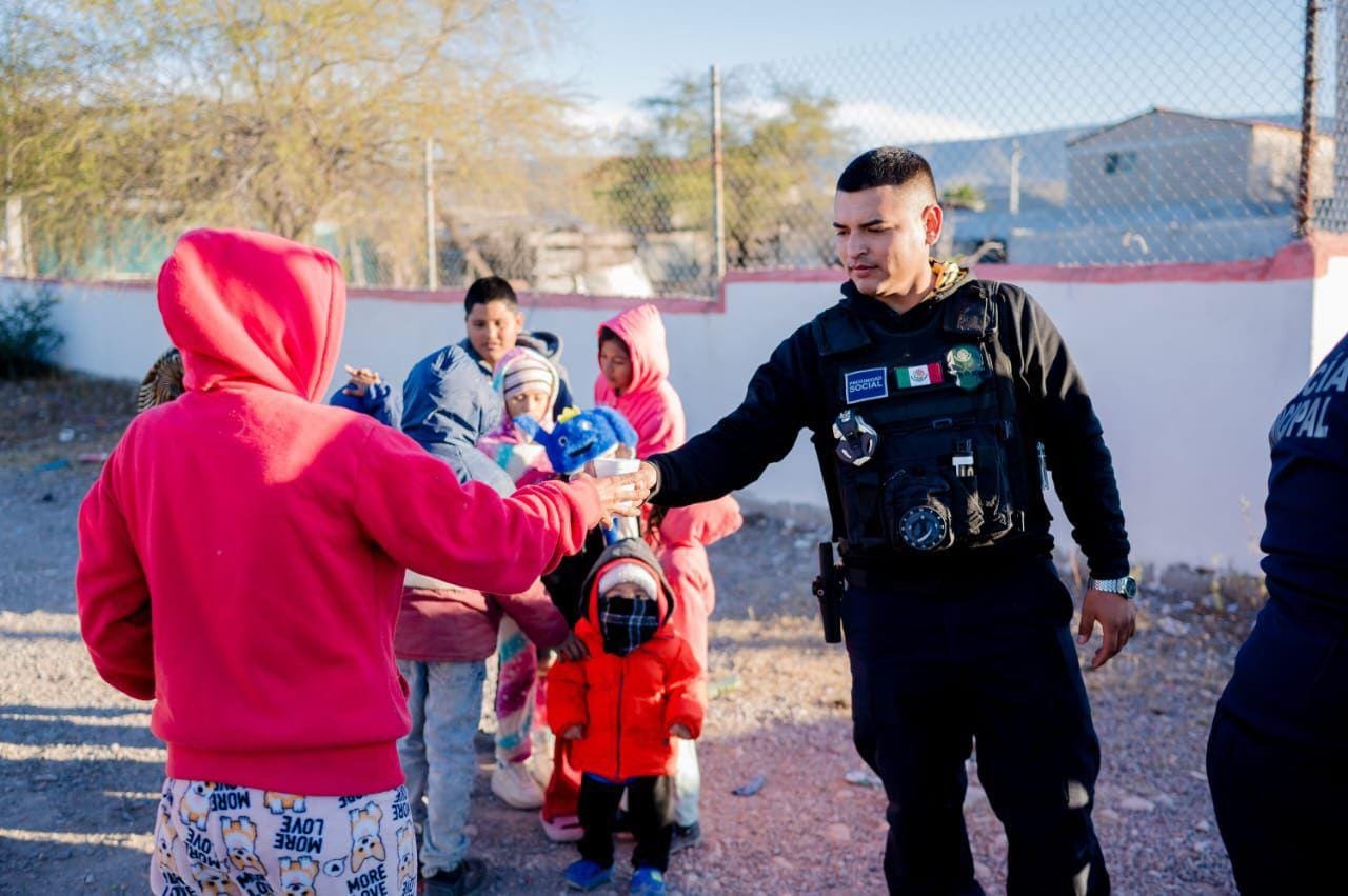 MONCLOVA, COAH.- Elementos de la Policía Preventiva Municipal recorrieron sectores de la periferia de Monclova y llevaron a sus habitantes la tradicional Rosca de Reyes, así como champurrado y café.