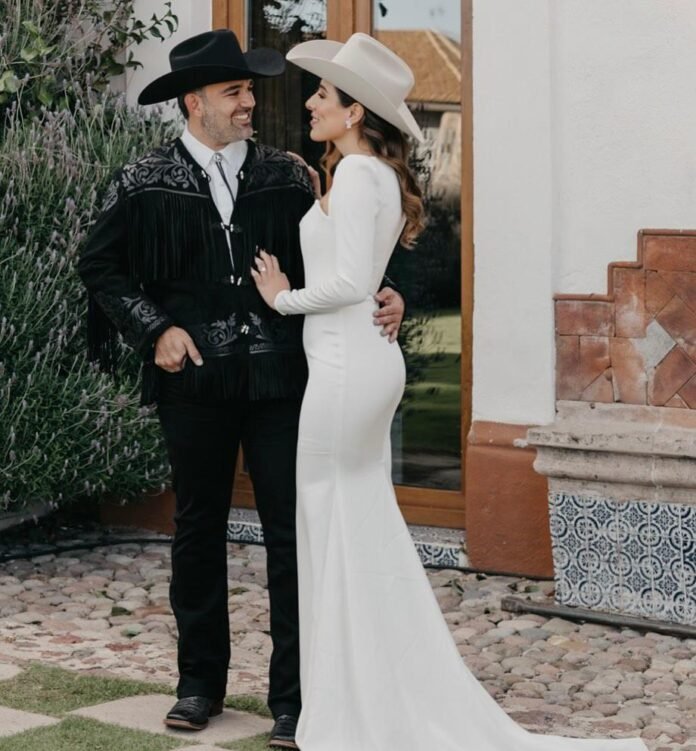 Los que finalmente se animaron -o ya no se aguantaron- a publicar fotos de su boda fueron los “novios del bienestar”, Américo Villarreal Jr. y Cecilia Guadiana. Solo fueron tres imágenes las colgadas en sus redes sociales, pero suficientes para identificar que, al menos en lo que a selección del atuendo nupcial se impuso la estética de Tamaulipas, pues tanto el traje del novio, como el ajuar de ella fueron elaborados a partir de la tradicional “cuera tamaulipeca”, indumentaria típica del estado natal de él.