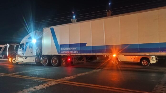 Elementos de la Guardia Nacional realizaban una inspección a un tractocamión Kenworth, modelo T680, con placas 43-AZ-6F, acoplado a un semirremolque, cuando detectaron ruidos sospechosos provenientes de la caja.