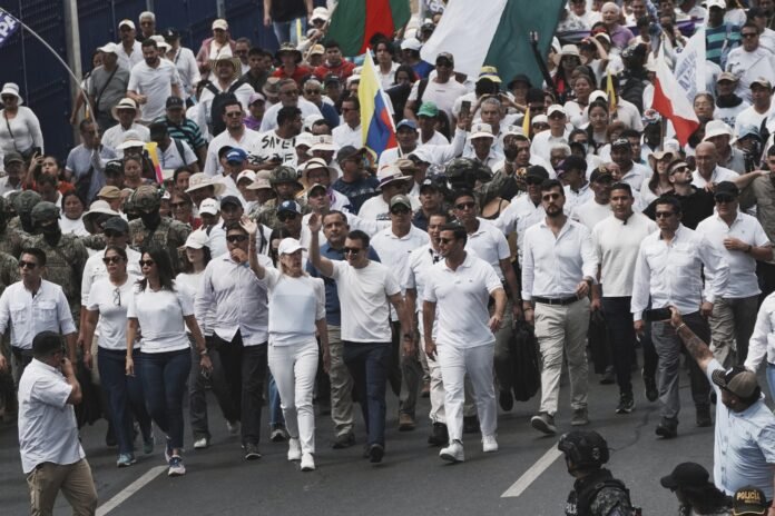 Presidente Noboa encabeza marcha por la paz mientras se alista una movilización contra su gobierno
